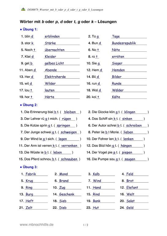 Arbeitsblätter zum Vervollständigen von Wörtern mit fehlenden Buchstaben b/p, d/t, g/k. Nutze die Verlängerungsprobe zur Überprüfung. Ideal für effektives Rechtschreibtraining im PDF-Format. Perfekt für Schüler und Lehrer.