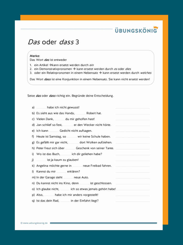 Arbeitsblatt Dass Das – Drucken, PDF
